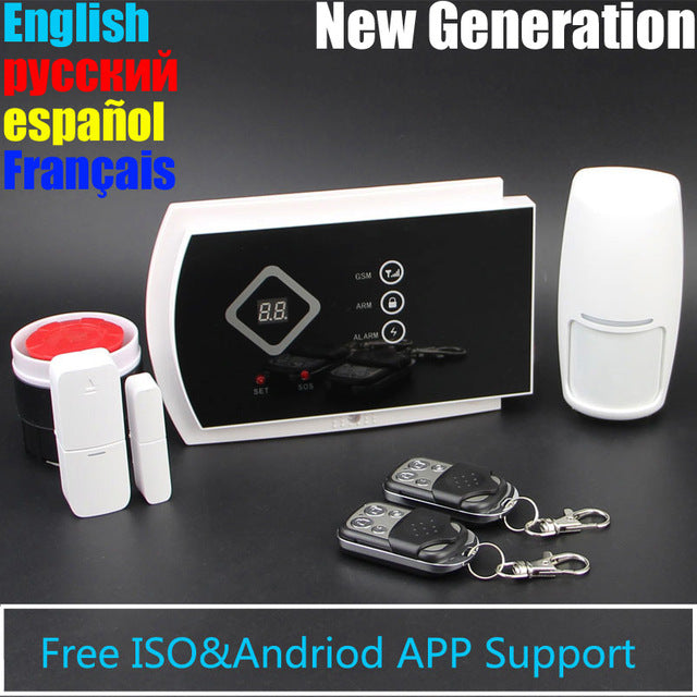 Voice prompt Wireless/Wired SMS GSM Alarm System Home auto security Systems with PIR/Door Alarm Sensor APP control device kit